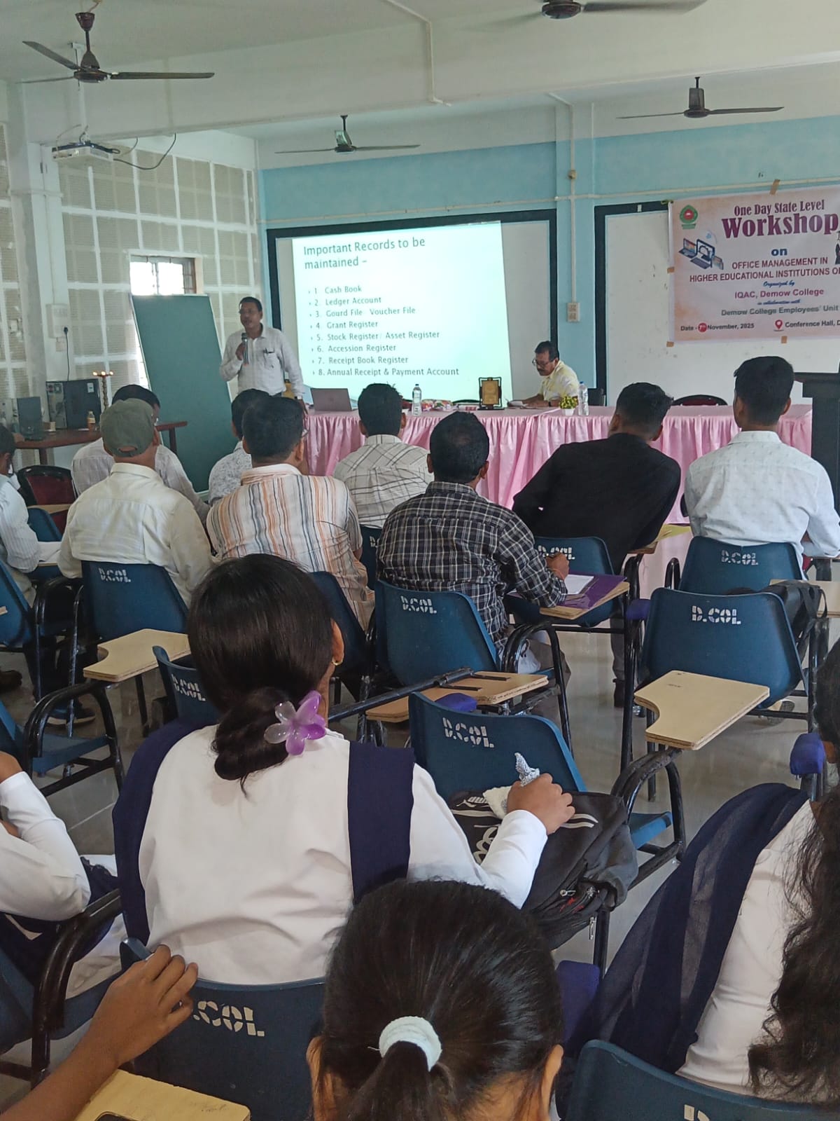 Day long State Level Workshop on Office Management at Higher Educational Institutions of Assam, organized by IQAC & Employees’ Unit, Demow College. Also Book & News Letter release programme amidst the workshop.