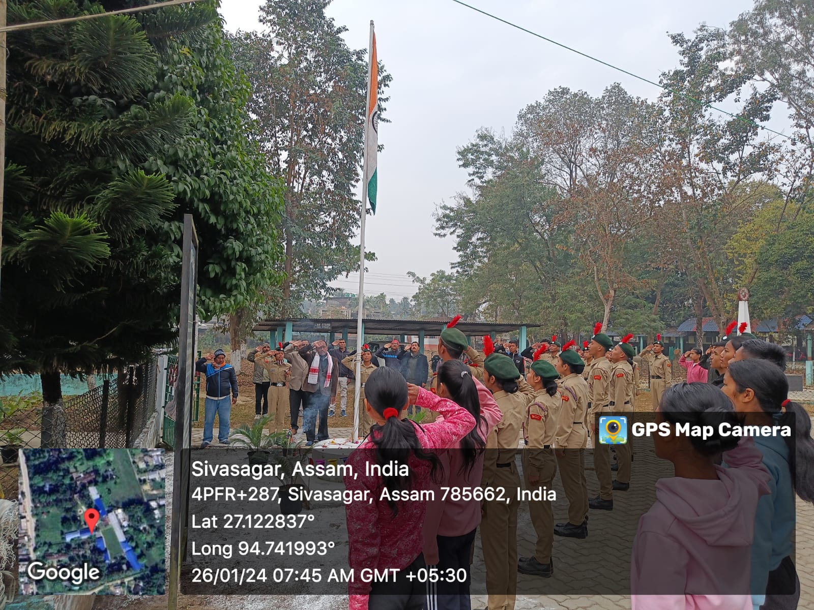 Hoisting the National Flage in cooperation with the NCC cadets