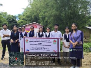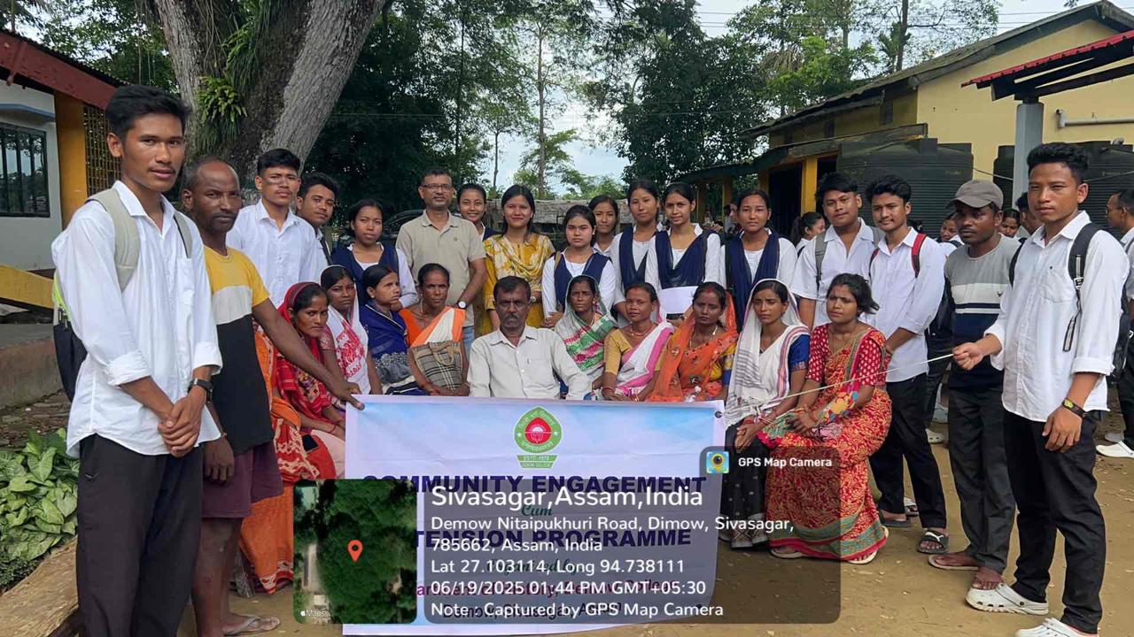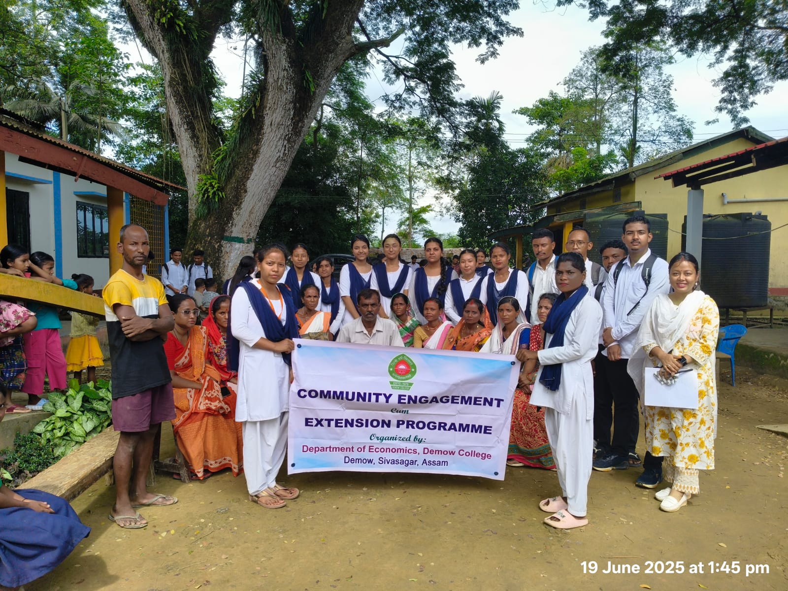 The students of the Department of Sociology, Demow College, successfully participated in the Community Engagement Programme held on 25th June, 2025. As part of the programme, the students, accompanied by faculty members, visited Athabari Bagicha LP School. An engaging and interactive session was conducted with the local residents, during which the students raised several thought-provoking questions related to the Adivasi community — the predominant group in the area. The interaction offered valuable insights into the community’s present-day socio-economic and cultural realities.