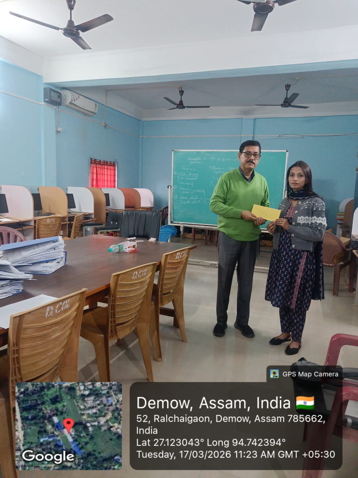 Ms Sumi Chutia, a student, Sibasagar Girls ‘College from distance learning in Library & Information Science received the completion certificate as Intern(108 hrs) at Demow College Library, Demow College