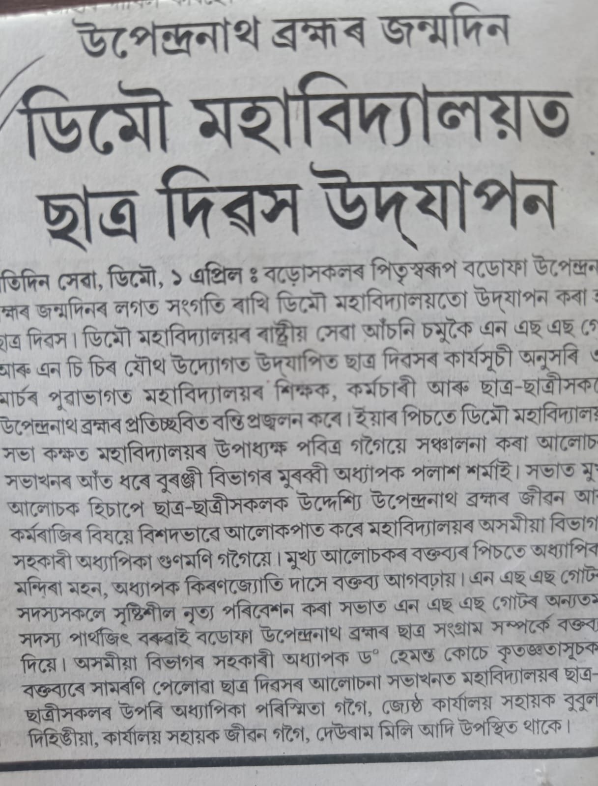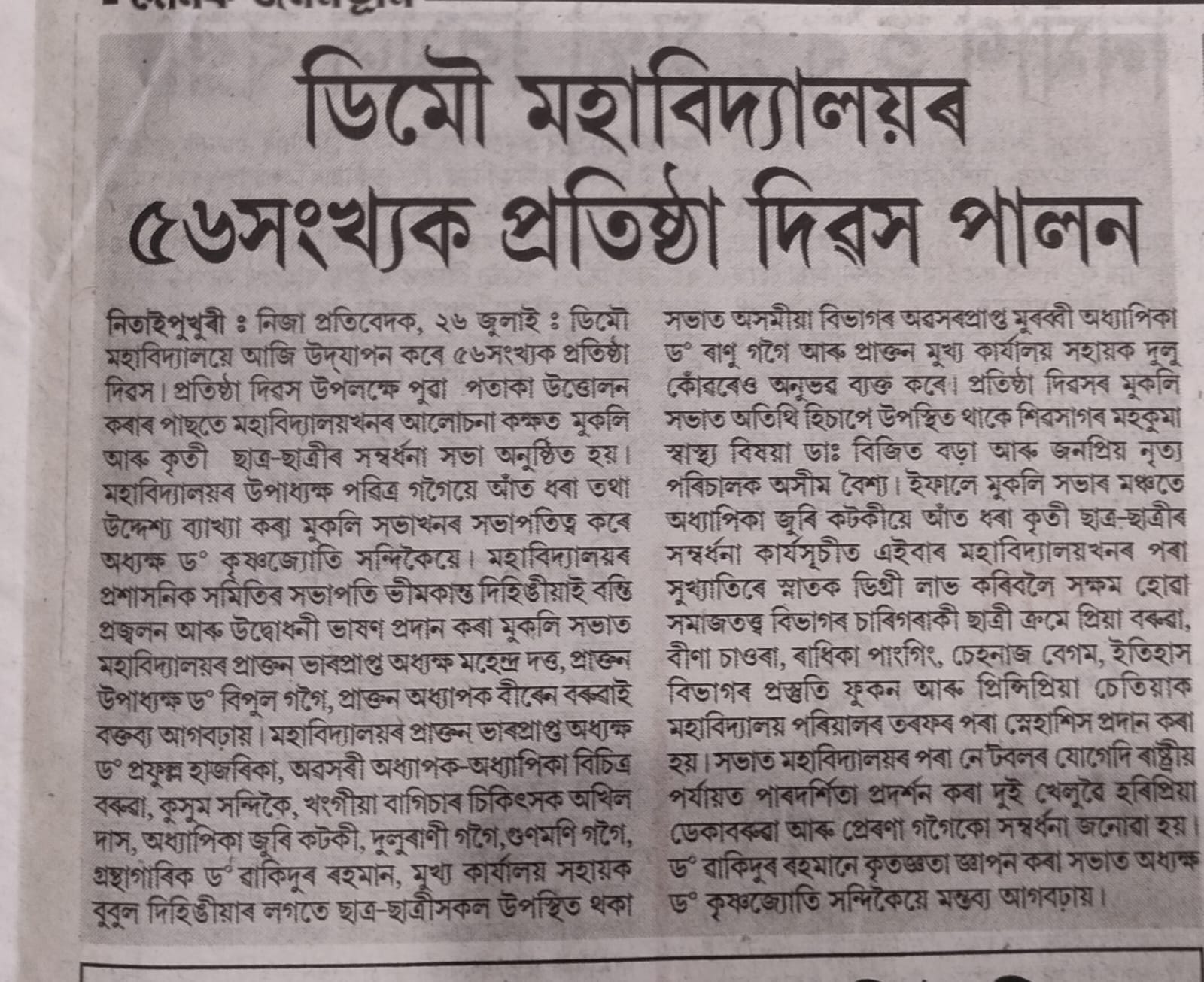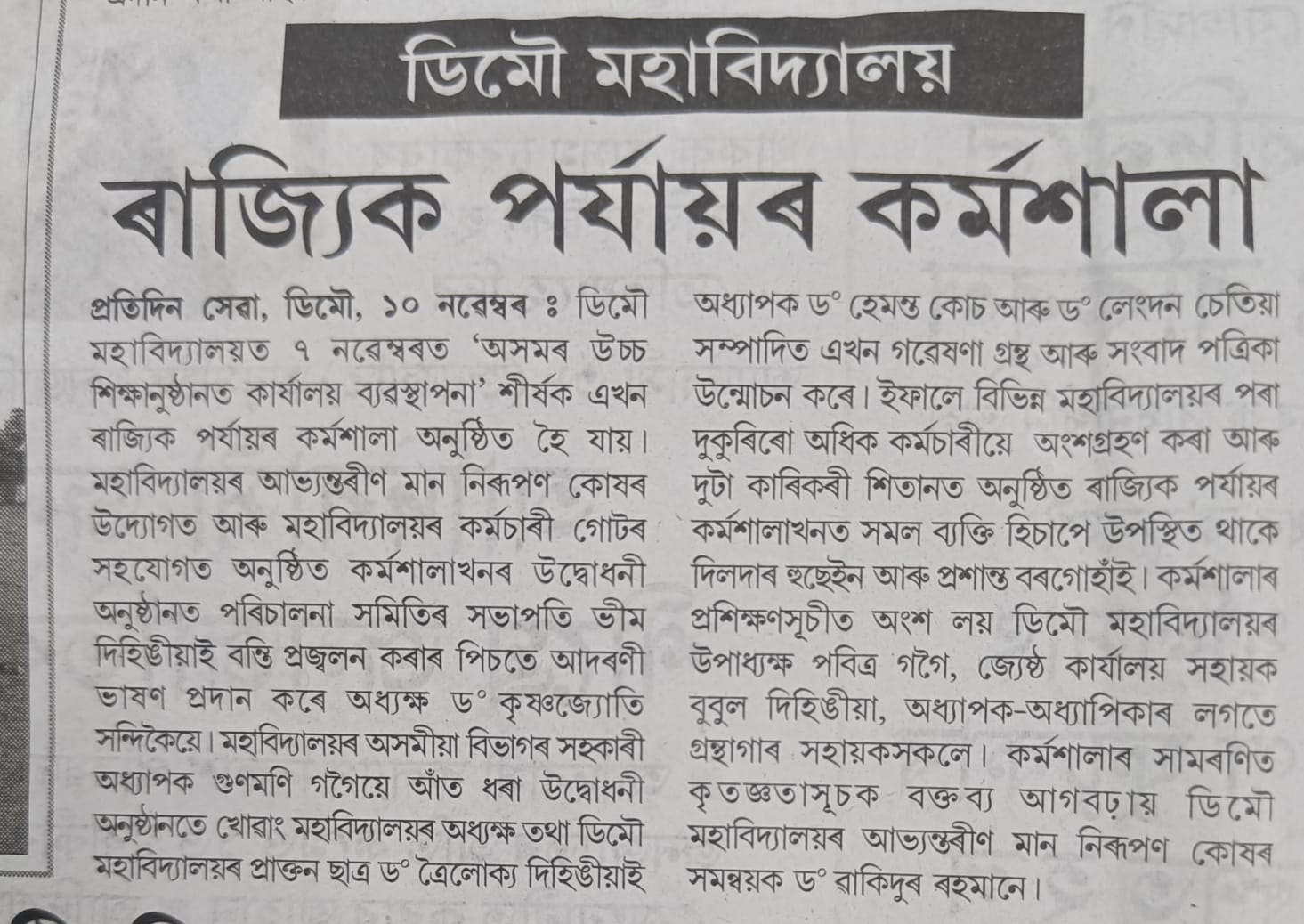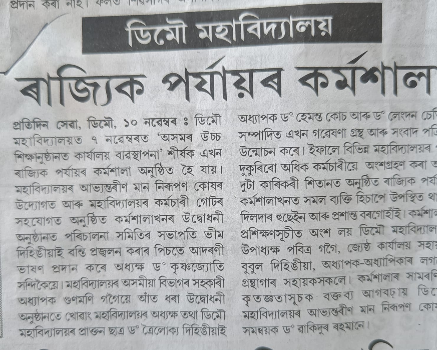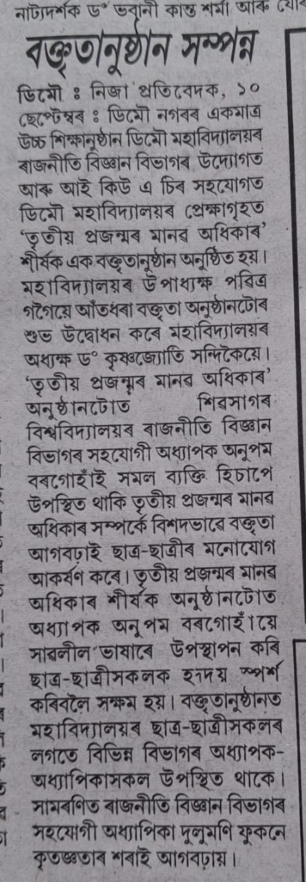 Parent Teacher Meet, organised by Demow College